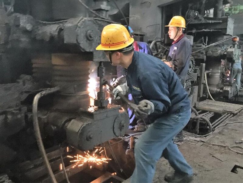 加入到龍鋼這個大家庭的那年,正是棒材一線試生產(chǎn)階段。張清華充分發(fā)揮共青團員不怕苦、不怕累的精神,跟隨師傅們加班加點,研究探討生產(chǎn)階段出現(xiàn)的各類問題,并積極參與改進處理,促使棒材一線快速達產(chǎn)達效。大家不會忘記,在那些艱辛的日子里,在寒風凜冽的夜晚,張清華堅守在生產(chǎn)現(xiàn)場,用責任維護著設備順行;在灼熱的冷床上,他細心地測量著成品鋼材的每一個尺寸,工作服被汗水浸濕了一次又一次;為了軋制出精品,尤其是在做副調(diào)整工的時候,他總是以嚴要求、高標準來要求自己,從抓細節(jié)做起、嚴把過程關,從他手里裝配的軋輥質(zhì)量是最好的,速度也是最快的。他也從不吝嗇,總是將自己的備輥經(jīng)驗及時分享給身邊的工友,大家都對他贊許不已。尤其是高線精軋機組的裝配中需要高超的技術水平,為了不斷提升自己,他主動承擔精軋成品架次的裝配工作,努力學習工藝特點,提升自身的業(yè)務技能素質(zhì),在多次軋輥裝配比賽中都取得了優(yōu)異的成績。