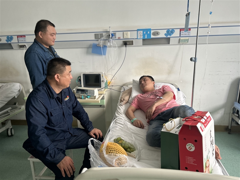 “最近身體恢復(fù)得可好,公司職工大病補(bǔ)助政策很好,住院一大半費(fèi)用都會(huì)報(bào)銷……馬上中秋了,希望你早日康復(fù),回家過個(gè)團(tuán)圓的中秋節(jié)。”病房?jī)?nèi),煉鋼廠電儀黨支部書記劉衛(wèi)東正在慰問生病職工。