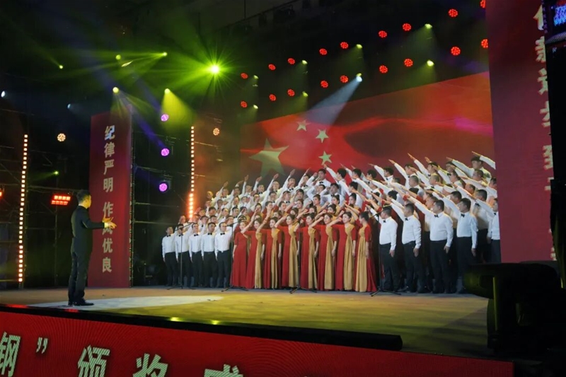主題鮮明、具有龍鋼特色的文藝節(jié)目與頒獎(jiǎng)環(huán)節(jié)穿插進(jìn)行,為盛典增添了濃厚的文化氛圍。歌曲《鋼鐵脊梁》唱出龍鋼人的責(zé)任擔(dān)當(dāng),歌伴舞《向光而行》傳遞奮進(jìn)力量,音舞快板《我們的答卷》回眸了不平凡的2025年,情景舞蹈《愛的篇章》詮釋了龍鋼人的大愛情懷,情景劇《榮光!致敬煉鋼三十年》展現(xiàn)了煉鋼三十年的奮斗歷程和文化傳承,配樂詩朗誦《“四維龍鋼”耀光芒》深情回望龍鋼人逐夢“四維龍鋼”的十三年征程;歌舞《讓世界充滿愛》傳遞了十里鋼城的感動(dòng)力量;歌曲聯(lián)唱《龍鋼之歌》《擁抱太陽》《祖國不會(huì)忘記》以磅礴氣勢收尾,唱出了全體龍鋼人的初心與信仰。